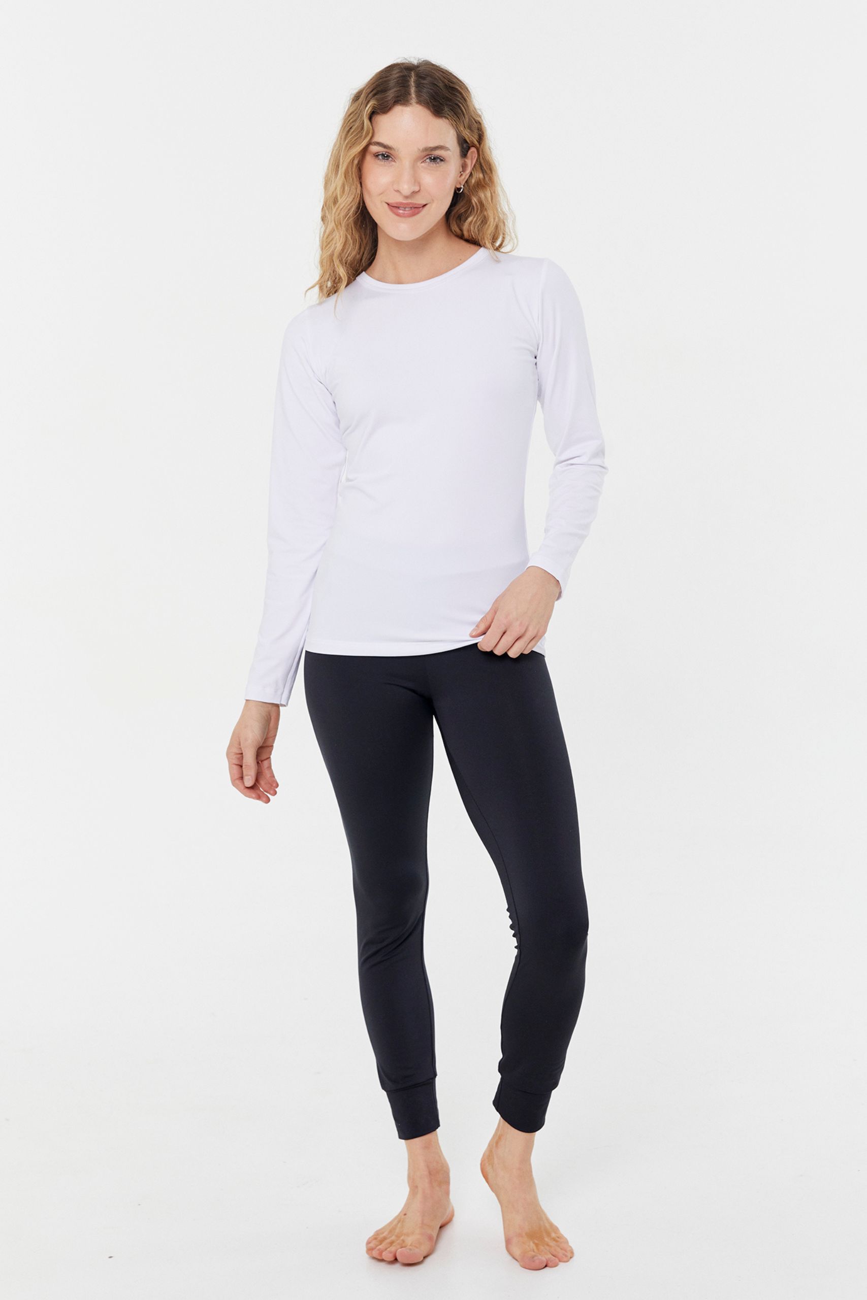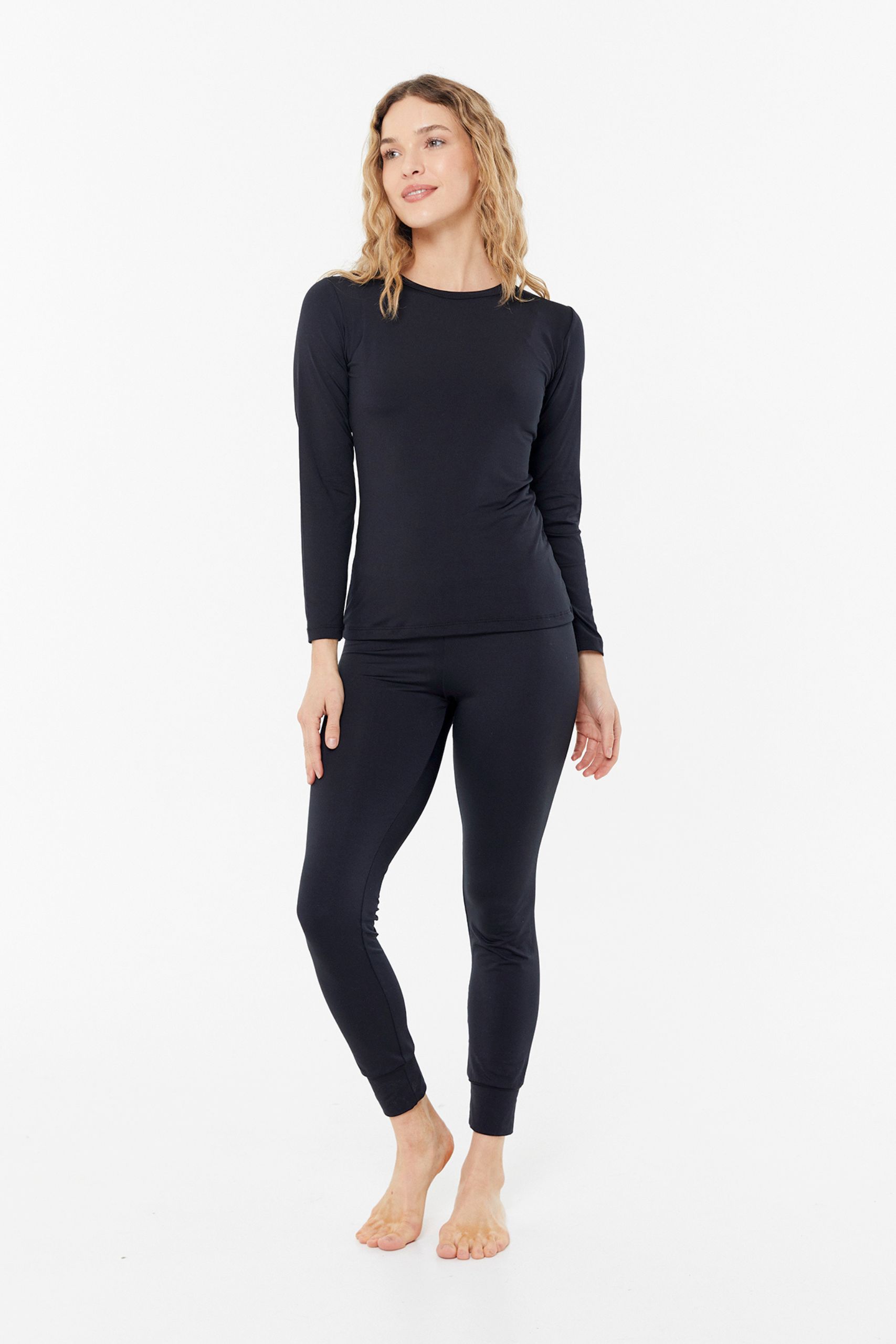 Calza frizada de mujer, suave al tacto y con costuras planas proporcionando comodidad y soporte evitando el roce.