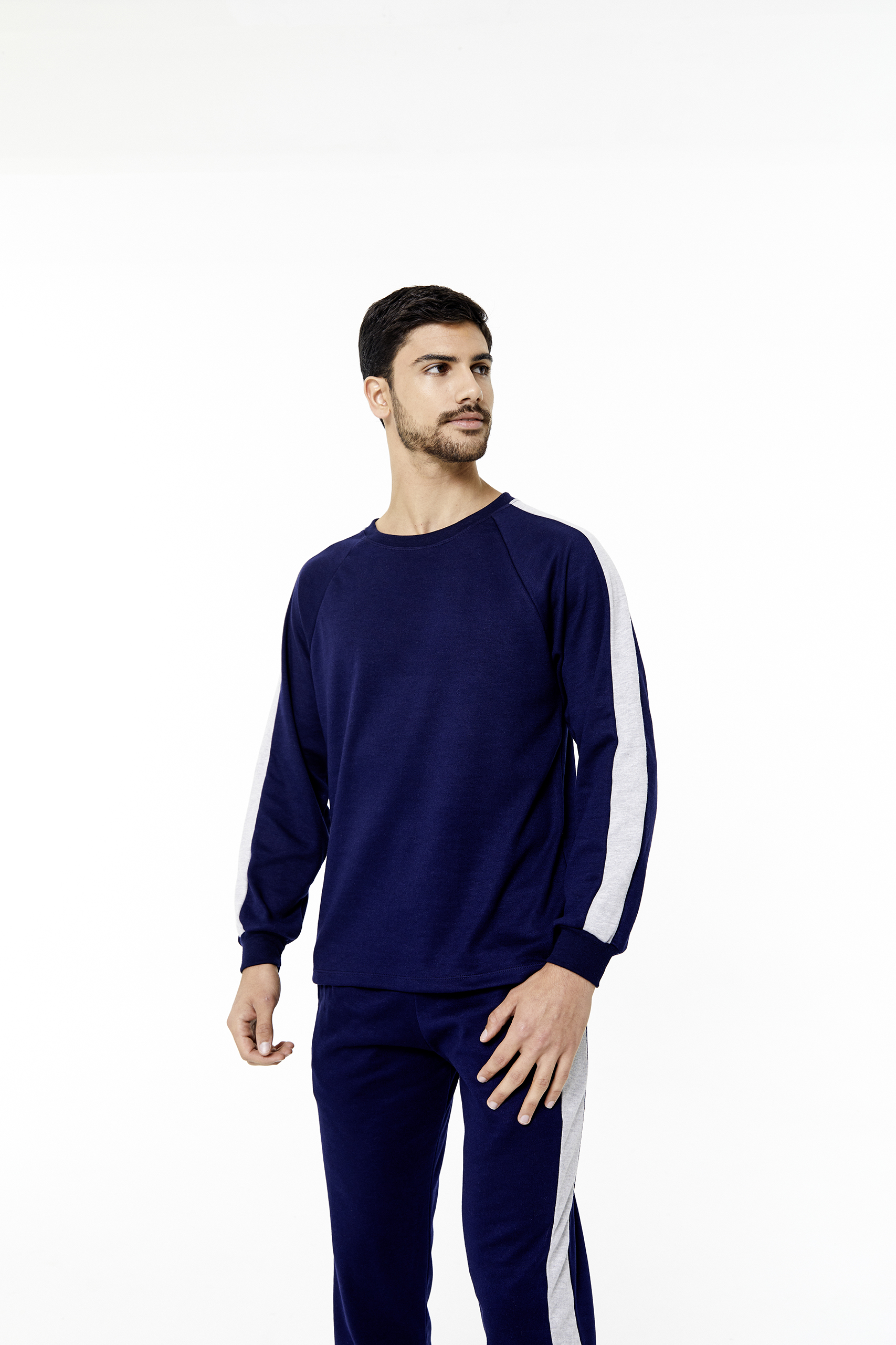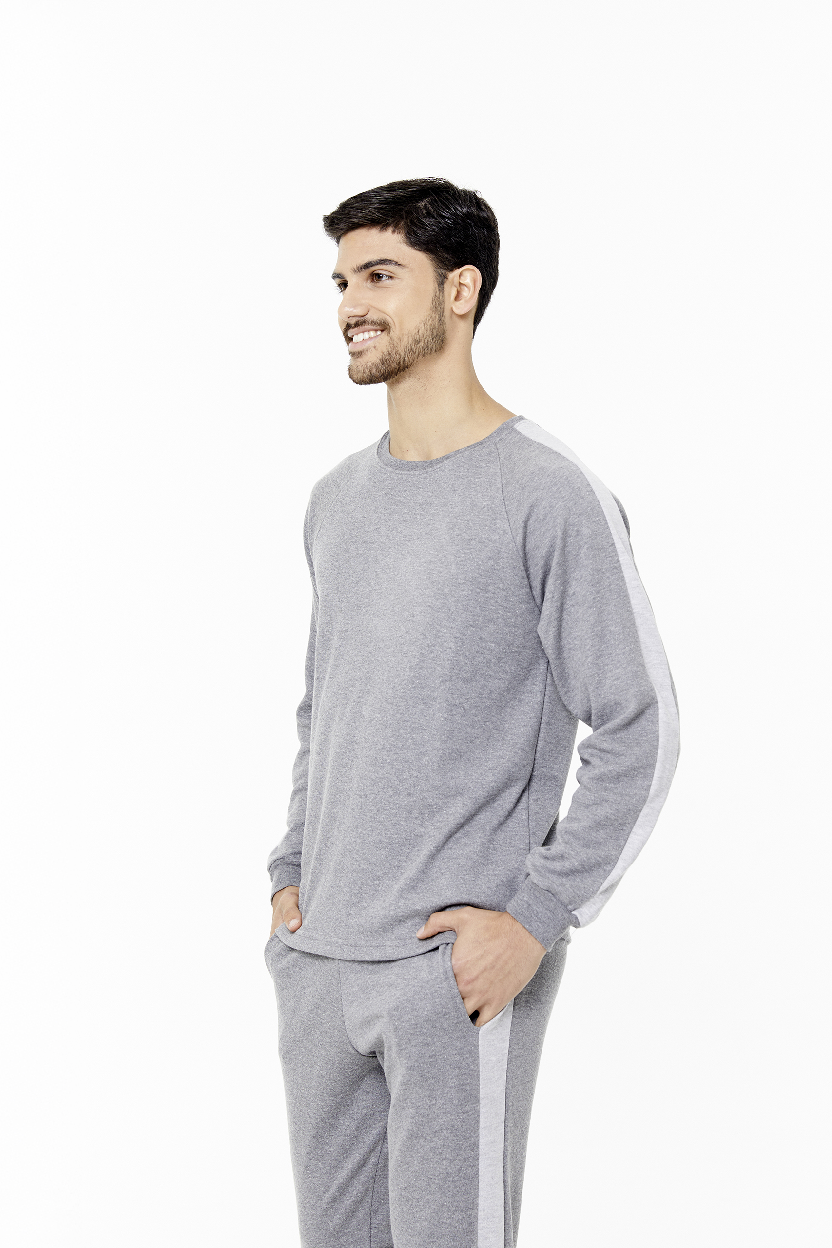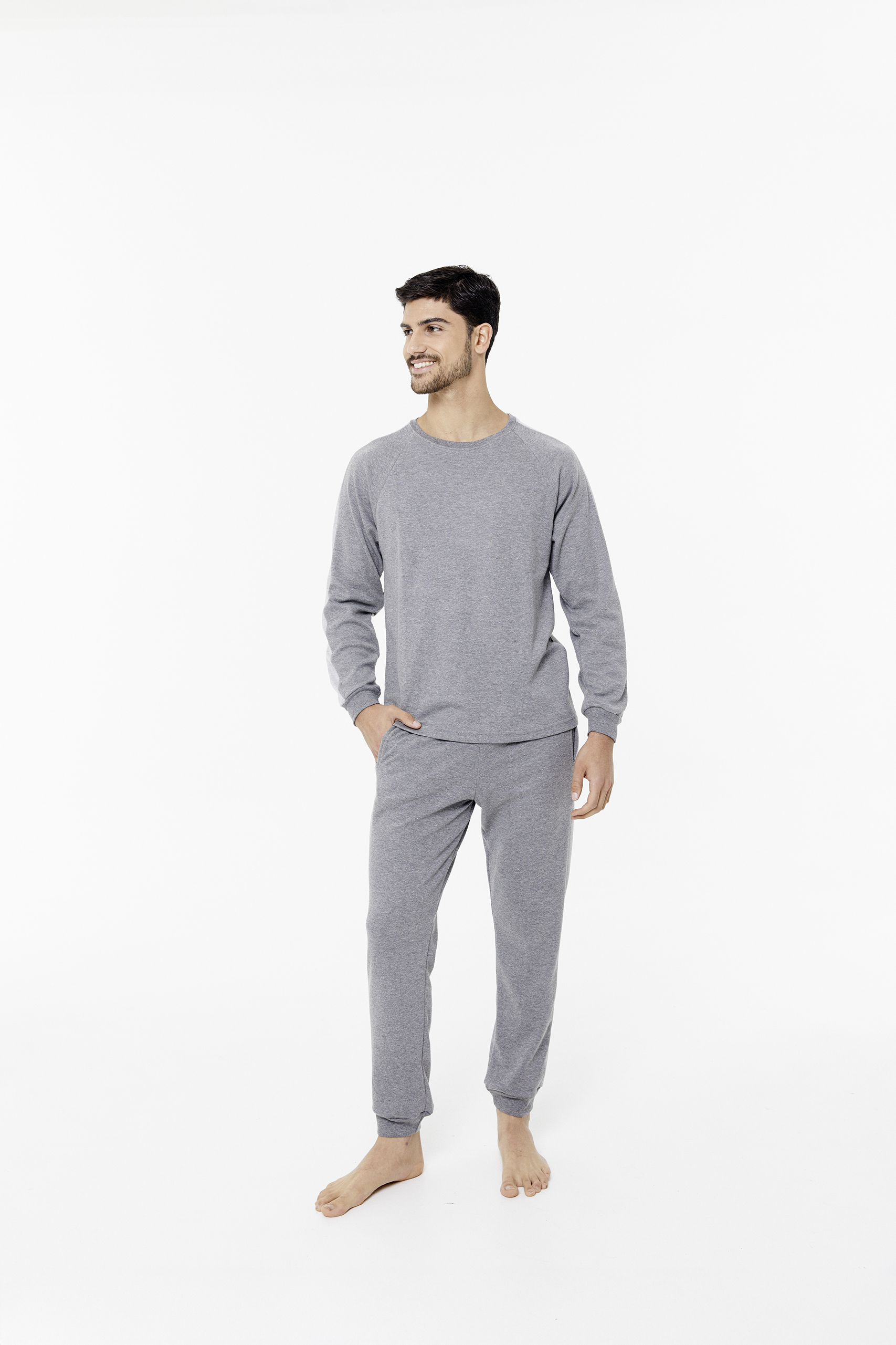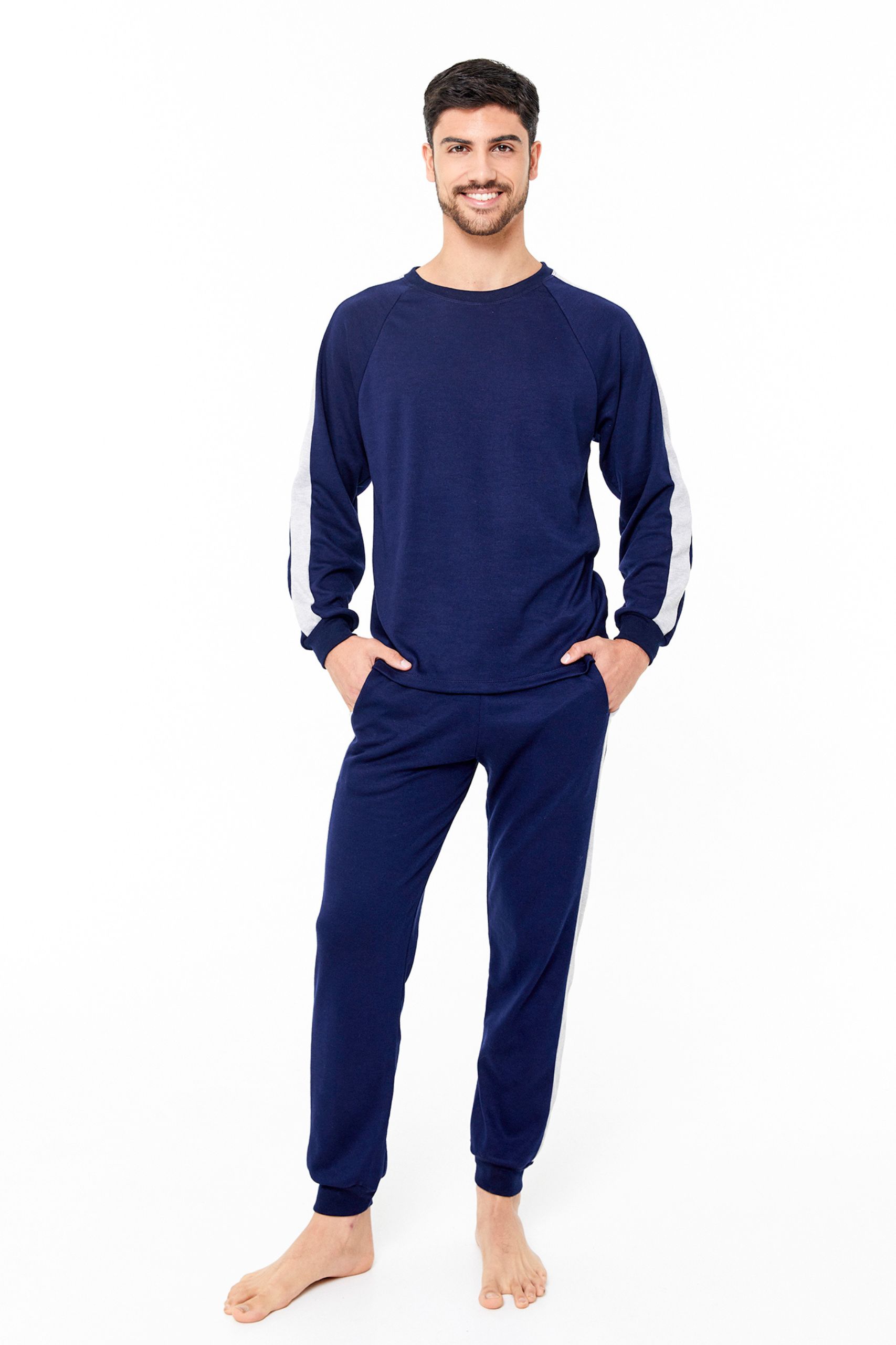Pijama de Hombre. Remera manga larga, escote redondo y pantalon interlock.