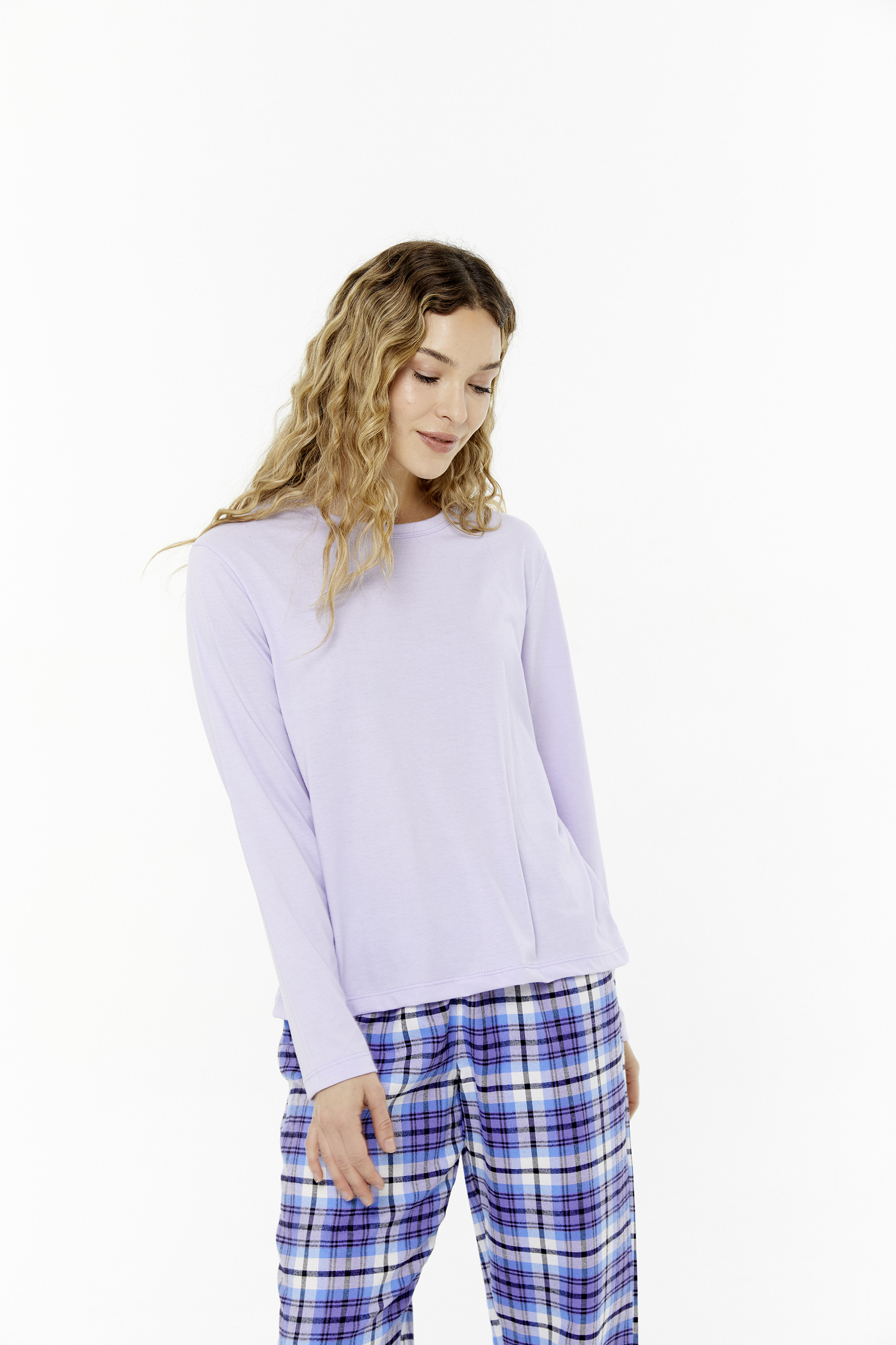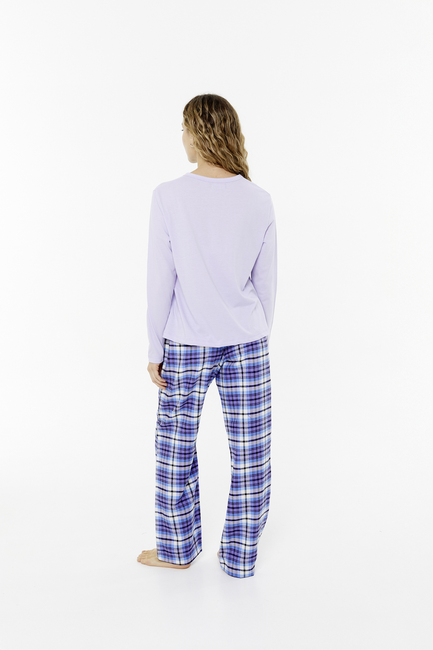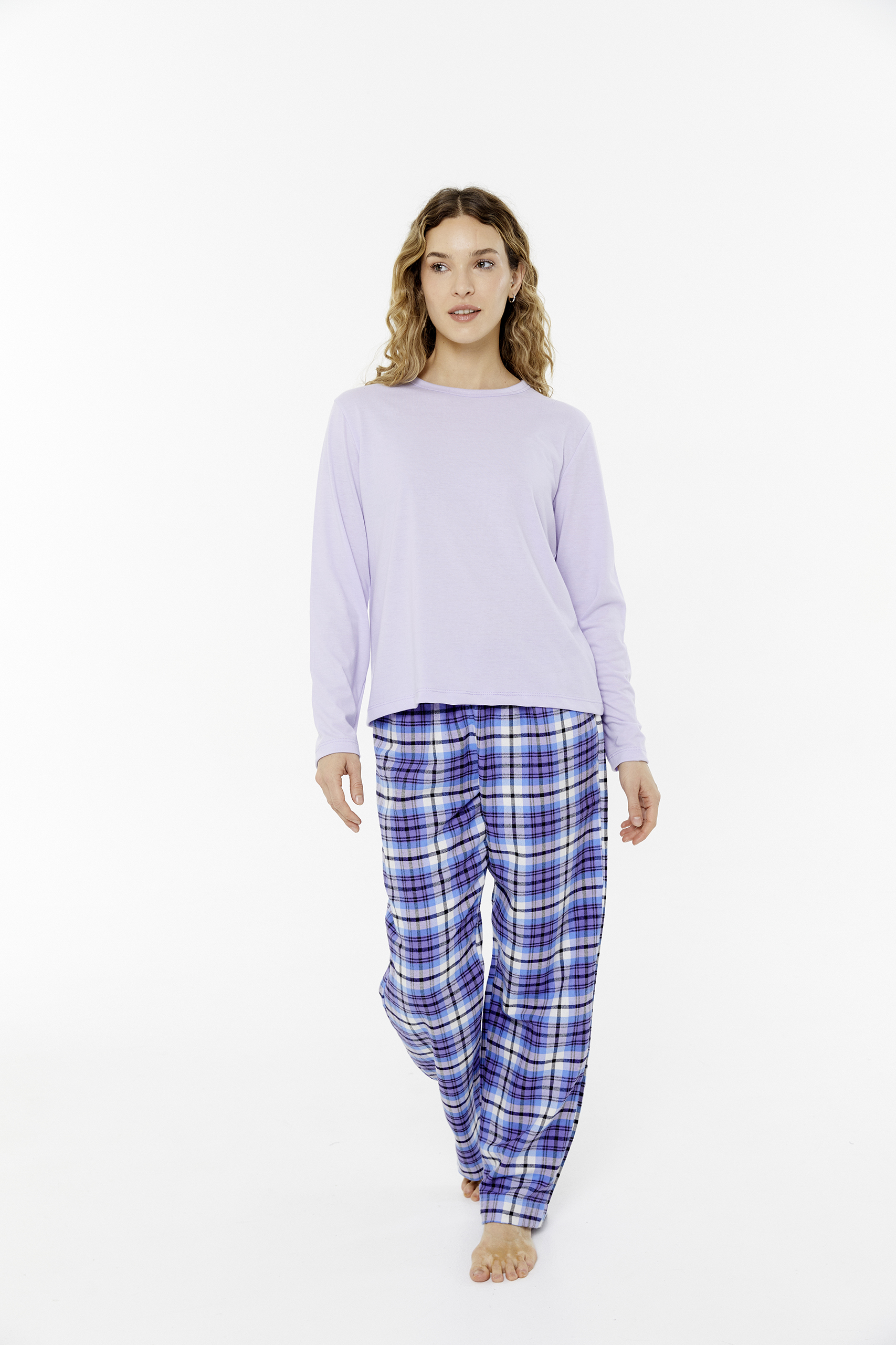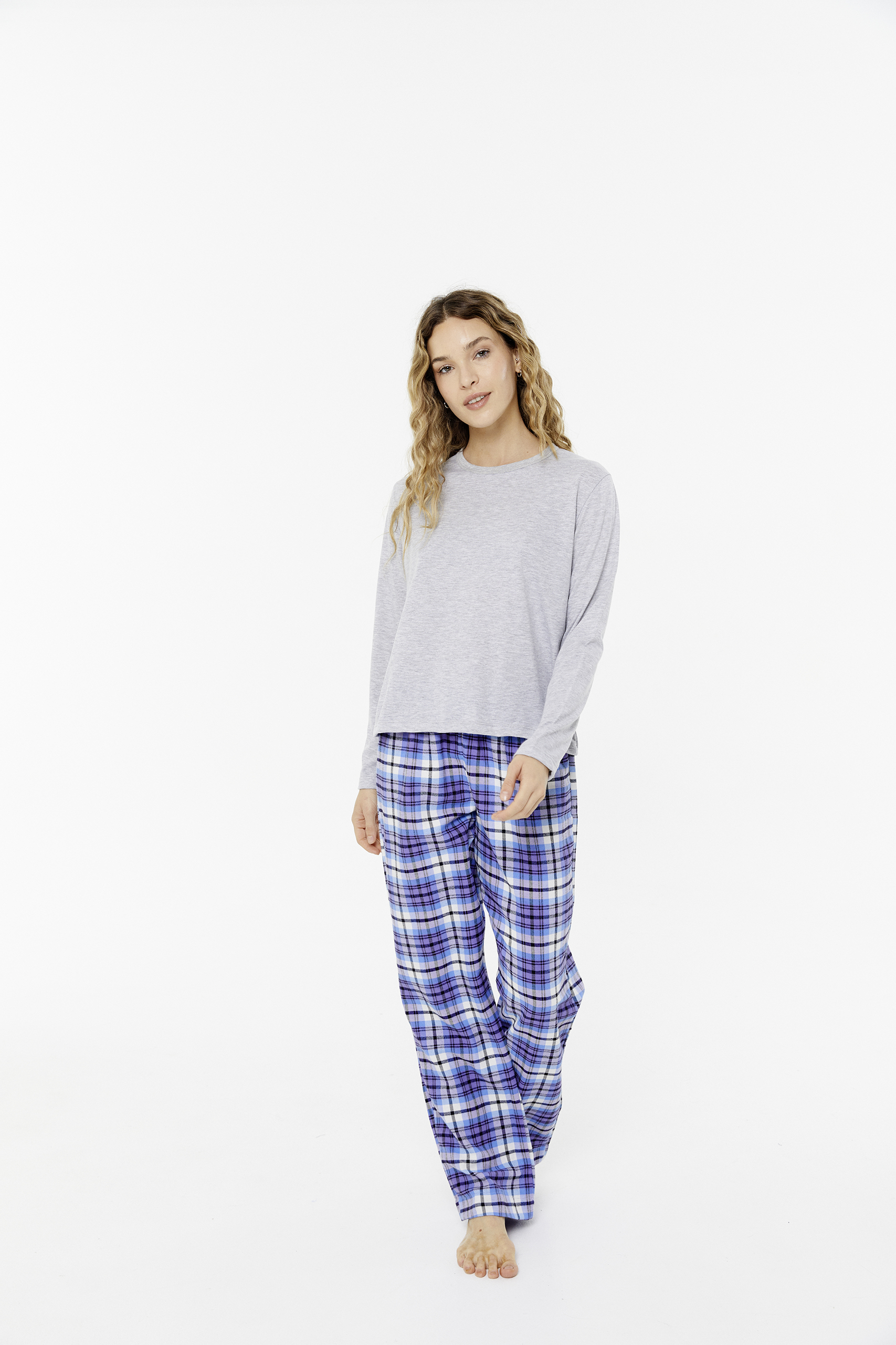 Pijama de Mujer. Remera manga larga de Jersey y Pantalón de Viyela.
