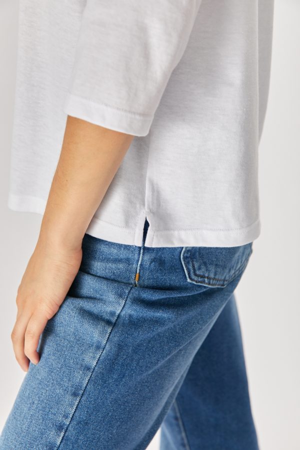 Remera Jersey escote redondo, manga 3/4 ranglan.